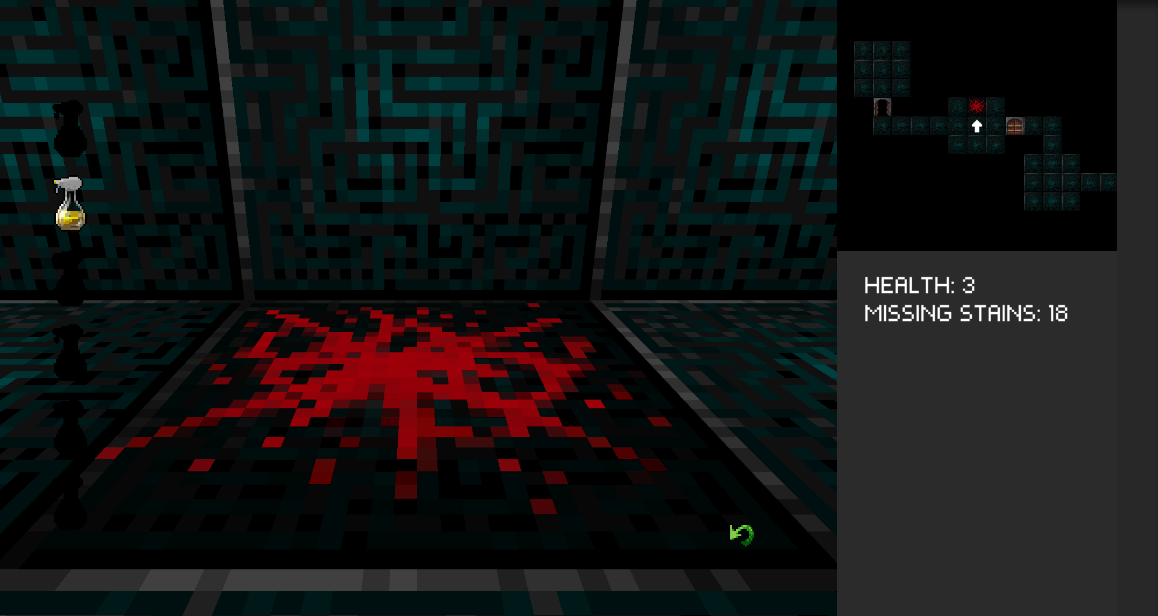 This game was made for the week long Dungeon Crawler Game Jam 2026. The theme "Cleaning up the hero's mess" resonanted immediately with me and the picture of cleaning blood stains with spraybottles in a dungeon was stuck in my brain. It's a low hanging fruit yet I was very excited about the idea. But the game was missing a mechanic. How should the cleaning work? The answer was found in another theme "elemental rock paper scissors". What if the colors of the cleaning products and the colors of the stains act like a rps. Put blue on magenta clean the stain etc.